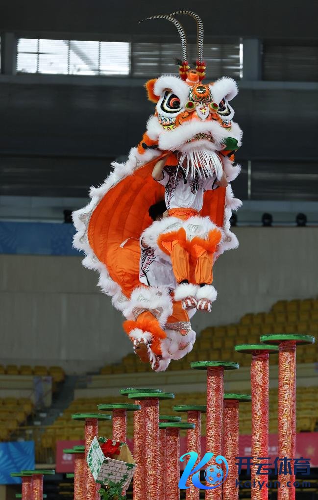 醒狮在高下绵延的桩柱上“闪转腾挪”