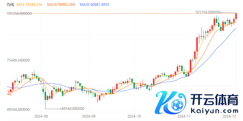 从近日进展来看,比特币的价钱从11月27日的不详9万好意思元低点稳步攀升至如今的10万好意思元以上。