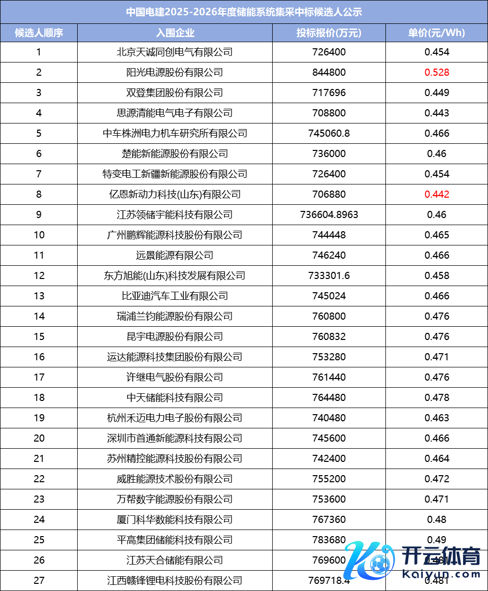 开云体育(中国)官方网站中标价钱在0.4418~0.528元/Wh之间-开云官网登录入口 开云app官网入口