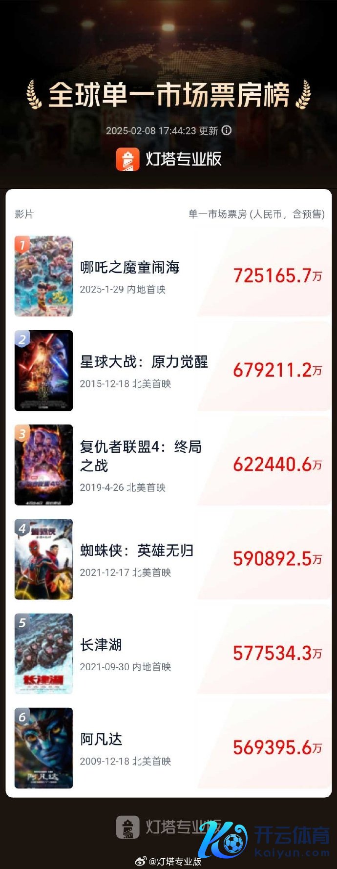 据灯塔专科版,终端2月8日17时44分,《哪吒之魔童闹海》总票房(含预售)打破10亿好意思元,成为宇宙单一市集首部破10亿好意思元的影片开yun体育网,亦然过问宇宙十亿好意思元票房俱乐部首部非好莱坞影片。