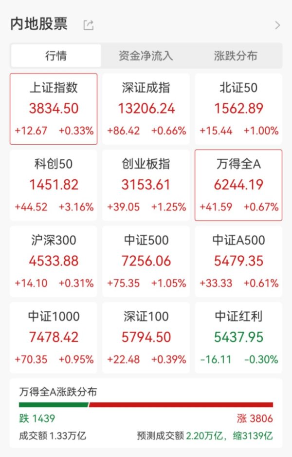 (原标题:A股午评:科创50指数涨近5%,芯片产业链集体爆发) 市集早盘低开高走,创业板指翻红后快速拉升,科创50指数大涨近5%。南财金融结尾显现,放置早盘收盘,沪指涨0.63%,深成指涨1.11%,创业板指涨1.76%。 从板块来看,芯片产业链集体爆发,江丰电子等20余股涨停,张江高科2连板续更始高,华软科技4连板,向日葵3连板,长川科技、盛好意思上海创历史新高; 地产股震撼走强,大龙地产4天3板; 机器东说念主认识股局部活跃,豪能股份涨停。 着落方面,旅游股集体下挫,云南......【更多...】