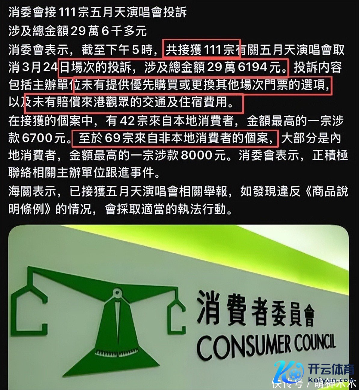 据港媒报说念,香港消委会一共接了111起五月天演唱会关系投诉,其中有42起腹地投诉,69起非腹地投诉,一共触及金额稀薄29万港币。投诉现实主要有两项,一个是专揽方未提供优先购买大要更换其他场次门票的选项,另一个是专揽方未补偿到港不雅众的交通住宿用度。