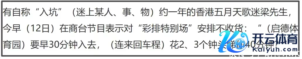 有香港歌迷直指五月天彩顺眼安排不巩固,路程太远,场馆要提前30分钟当年,往来车程要花两三个小时,成果只为了看40分钟。由此也能看出五月天的补偿有多磨蹭。而依此类推,腹地歌迷王人很难买账,更别说要破耗多量机酒的内地歌迷了。