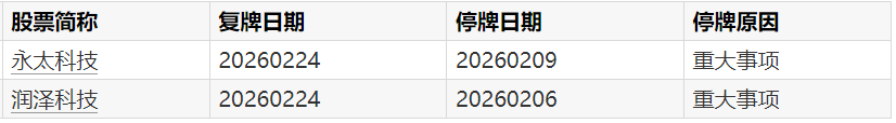 A股复牌教导:2股本日复牌A股复牌教导:2股本日复牌