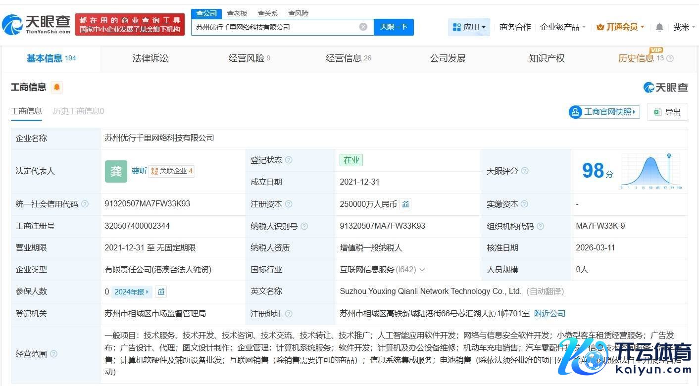 你的位置:开云官网登录入口 开云app官网入口 > 资讯 > 开yun体育网苏州优行沉网络科技有限公司发生工商变更-开云官网登录入口 开云app官网入口