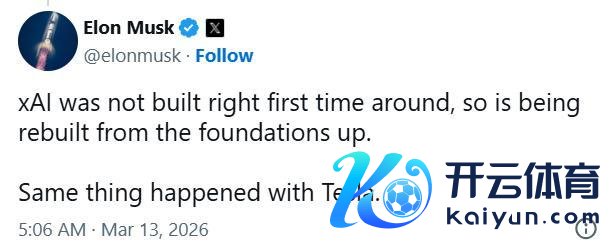 3月13日周四,马斯克在X平台发帖承认“xAI领先的构建神色有误,正在从基础全面重建”。据英国《金融时报》报谈,公司里面也正履历新一轮大范围东谈主员重组,原始相连独创团队已所剩无几。